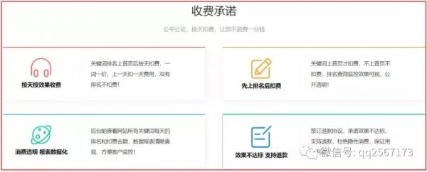 標志一:按天扣費;標志二:預存款項,先上排名后扣費;標志三:達不到排名,支持退款,當然還包括所謂的“7天上排名”,以及‘前50-100’排名的都可以刷首頁,甚至保證前三名。