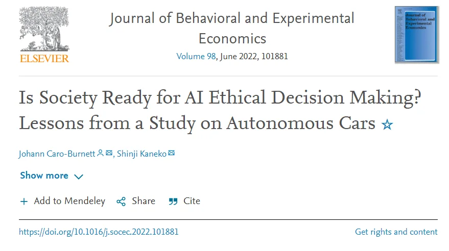 “事實上,當參與者被明確要求將他們的答案與社會的答案區分開來時,人工智能和人類司機之間的差異就會消失。”廣島大學人文社會科學研究生院助理教授 Johann Caro-Burnett 說。